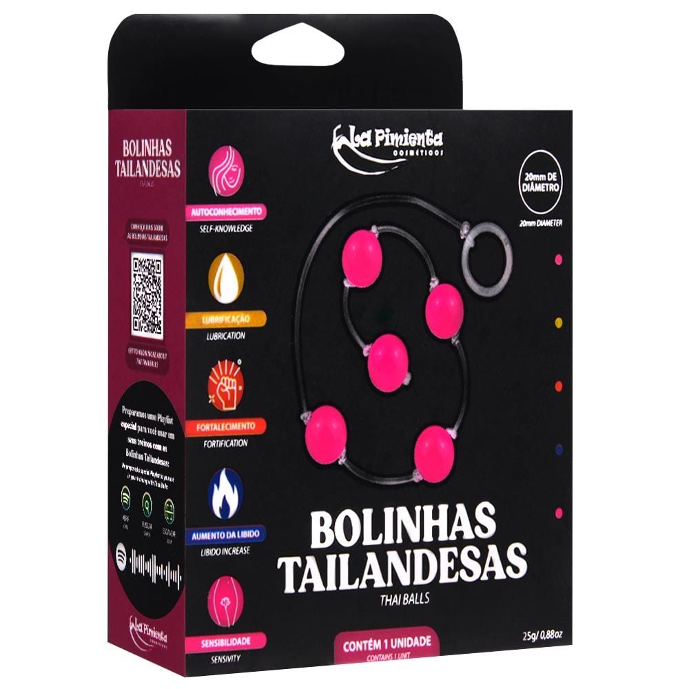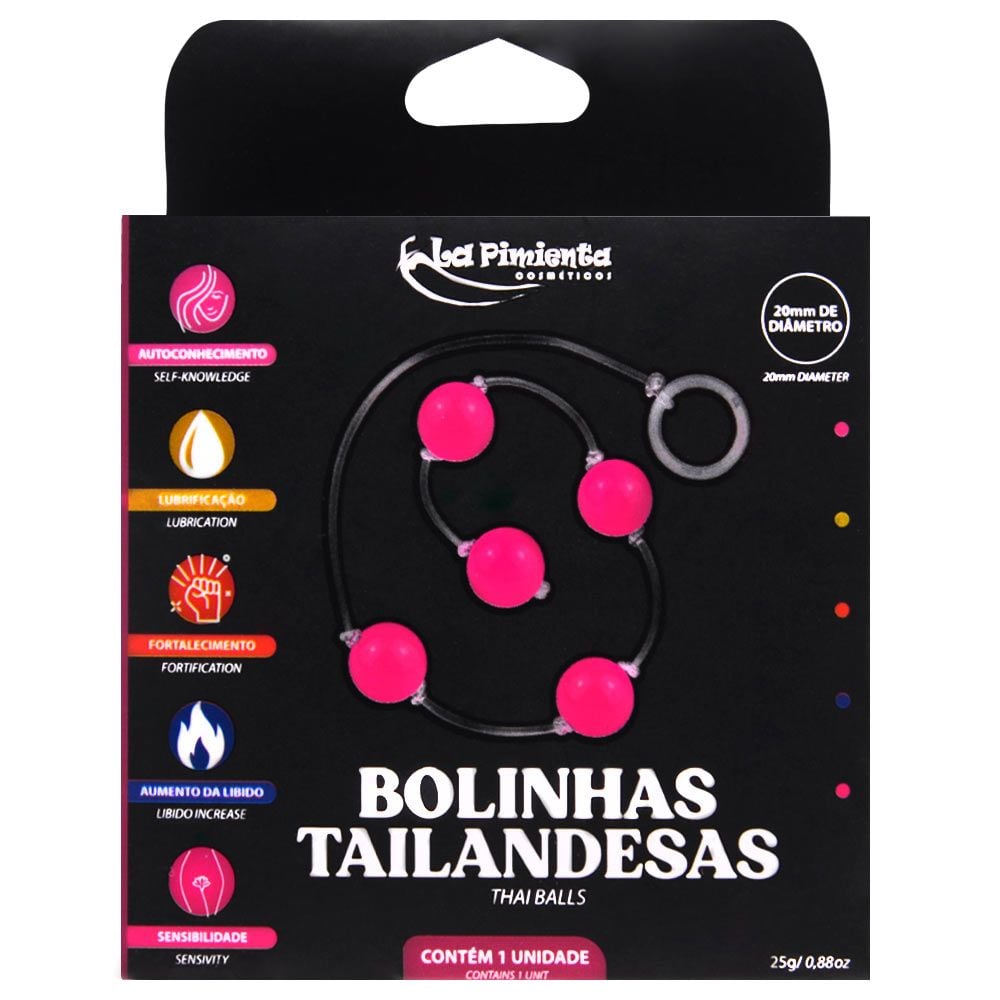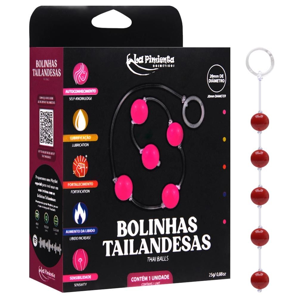 Bolinha Tailandesas P Thai Balls 2cm La Pimienta – Fortalecimento Íntimo e Novas Sensações. As Bolinha Tailandesas P Thai Balls 2cm da La Pimienta são compostas por 5 esferas ligadas por um cordão de silicone, ideais para a prática do pompoarismo e ginástica pélvica, além de oferecer novas sensações ao sexo. Estes acessórios são perfeitos para fortalecer a musculatura vaginal, prevenir a incontinência urinária e melhorar a saúde íntima geral.
