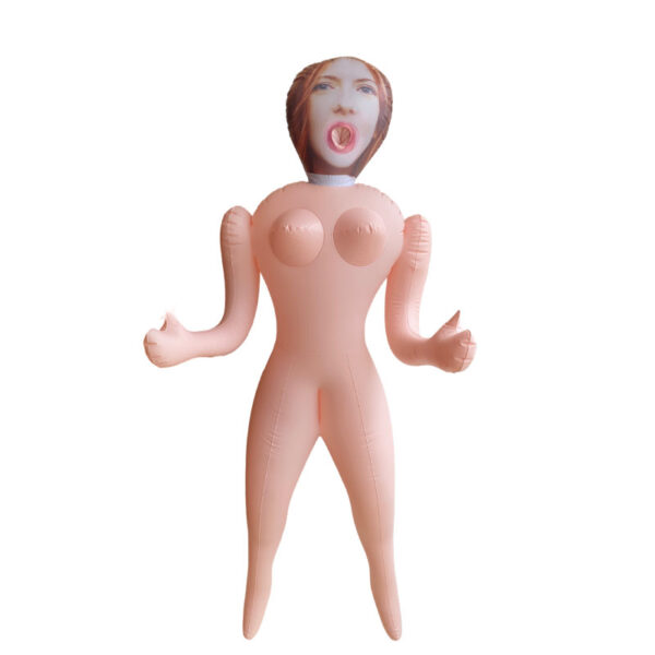 Boneca inflável com rosto 3D. Possui vagina e ânus removíveis em cyberskin para penetração.