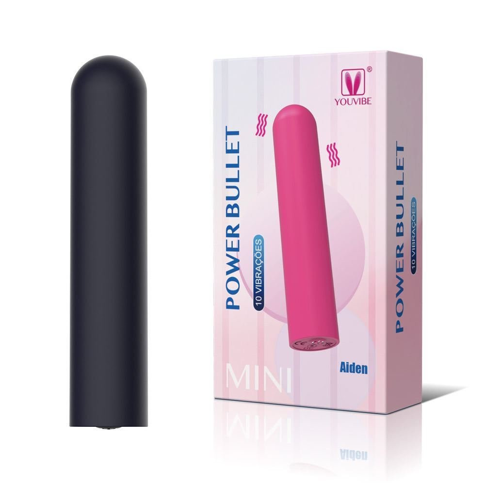 CÁPSULA POWER BULLET RECARREGÁVEL 10 VIBRAÇÕES AIDEN – PRETO