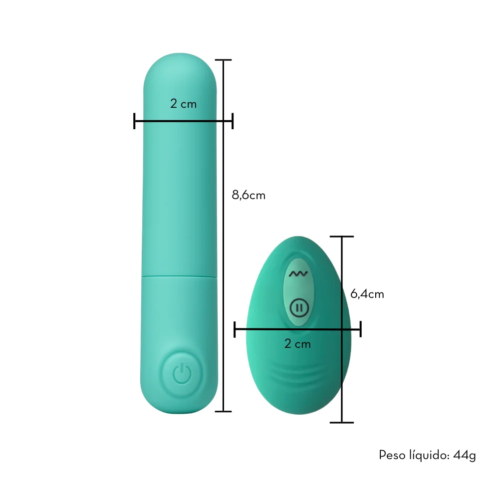Cápsula vibratória compacta e potente, ideal para estimulação externa. Possui acabamento suave em silicone, controle remoto sem fio e design discreto para uso prático e confortável.