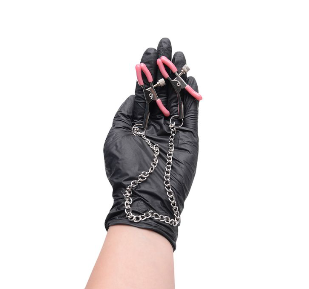 Grampos para Mamilos com Pressão Sexy Import. Este produto é um prendedor de mamilos desenvolvido para sensações prazerosas nunca antes sentidas, que inova a relação de qualquer casal, transformando o momento em uma noite inesquecível. O formato deste grampo é de presilha ajustável, diferenciado de muitos produtos no mercado. Por ser forrado com borracha, seu conforto e comodidade são essenciais para proporcionar muito mais prazer. O prendedor de mamilos possui botões de ajustes e corrente de metal interligando-os!
