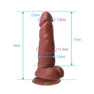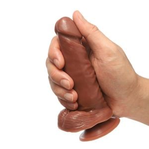 Pênis realístico com glande definida, veias por toda sua extensão e escroto. Feito de um material flexível, o pênis é macio ao toque e é confortável para a penetração.