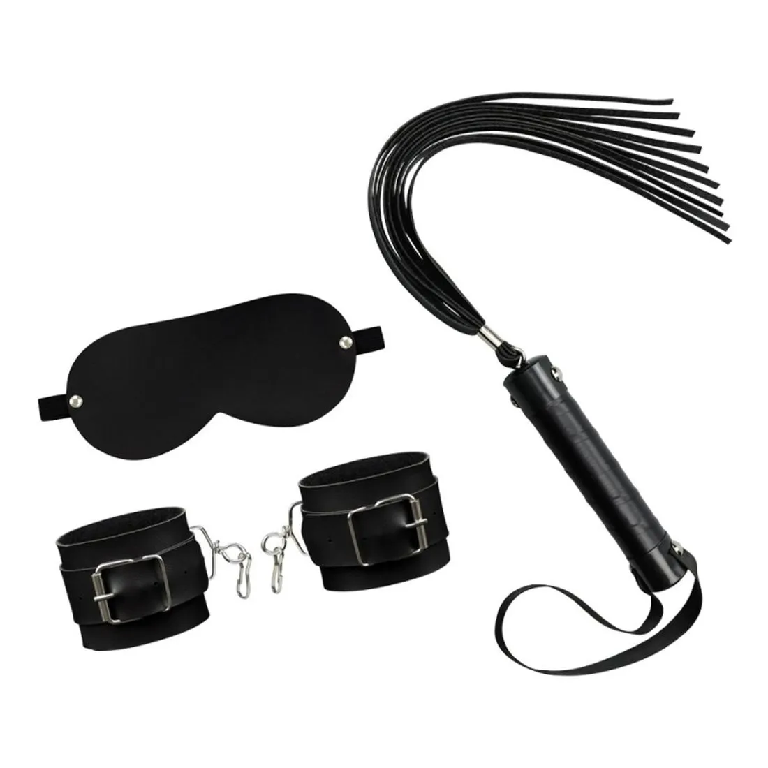 Esse conjunto de acessórios possui uma Venda Arredondada para que o dominador controle por total os sentidos de quem o acompanha, aguçando todos os outros, já que a visão foi limitada. O Chicote vai deixar o poder em suas mãos, já que o contato do mesmo com a pele excita tanto quem recebe a punição, quanto quem castiga. Por último e não menos importante, as Algemas, que mobilizam as mãos, limitando os movimentos da sua presa e deixa o clima mais sexy e insinuante.