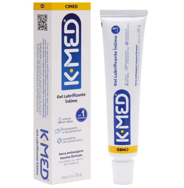 K Med Gel Lubrificante íntimo. É um gel para lubrificação íntima, de base aquosa que se assemelha a lubrificação natural. Proporciona mais conforto e segurança, sem perder a sensibilidade. Solúvel em água, transparente, não gorduroso, não tem cheiro, é facilmente removível e não mancha.