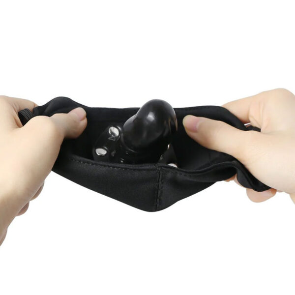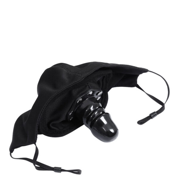 Mordaça com pênis realístico, possui veias, glande saliente e ajuste com fivela.