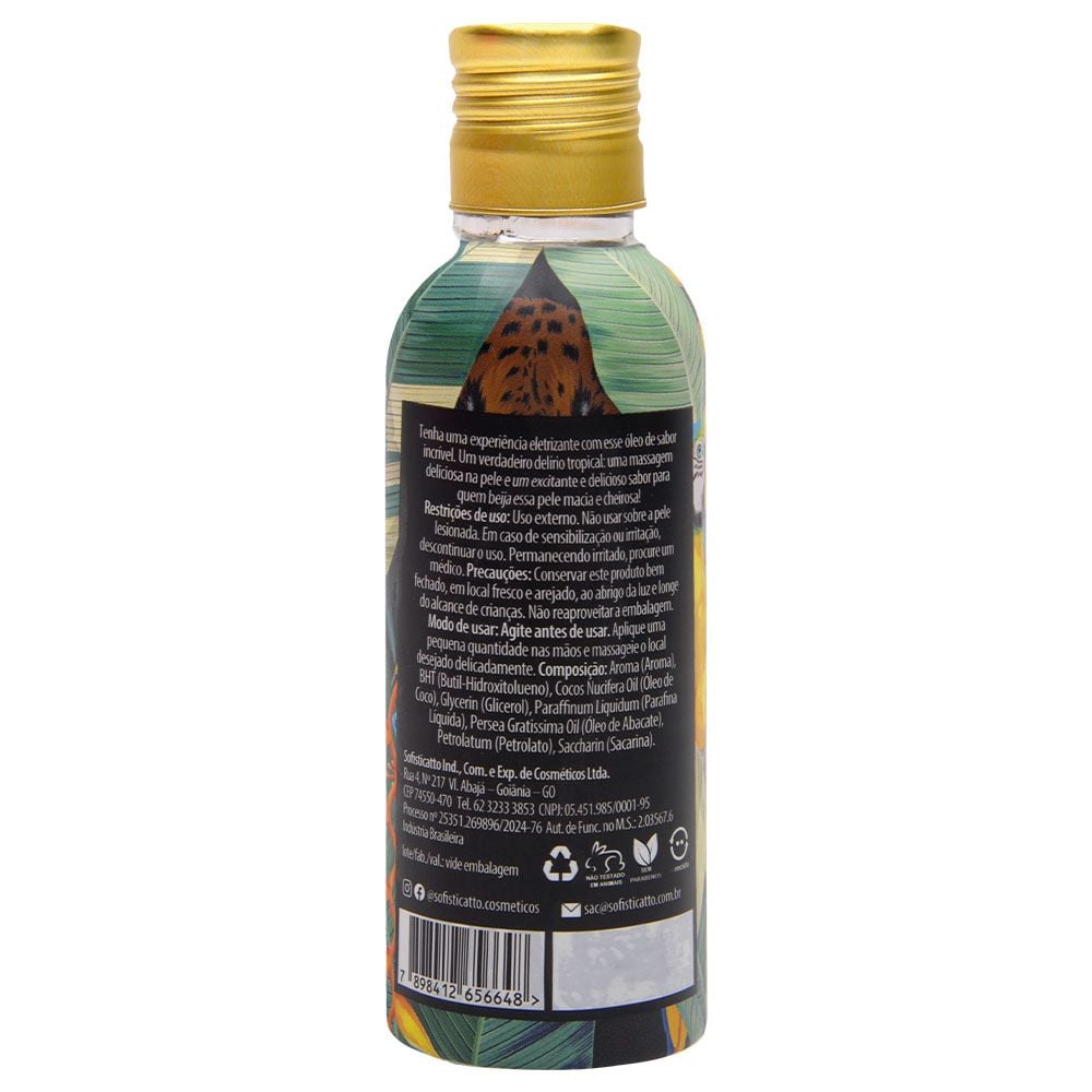 Surpreenda-se com a sensualidade e o sabor exótico do Óleo Beijável Corporal Delírio Tropical da Sofisticatto e leve suas massagens a um nível superior de prazer e intimidade!