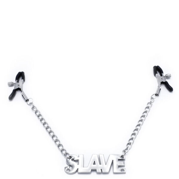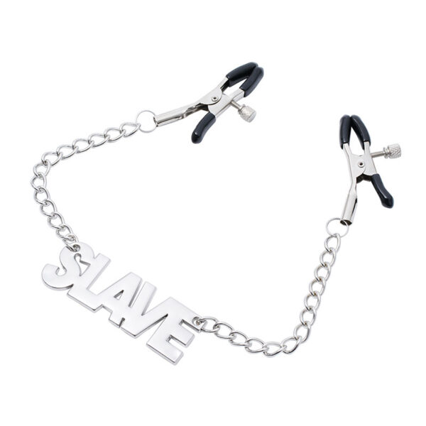 Par de Grampos para Mamilos com Regulagem e Pingente Escrito – SLAVE