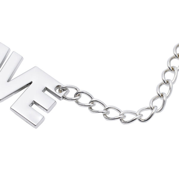 Par de grampos para mamilos com regulagem, possui corrente que interliga os dois grampos com pingente escrito BITCH.