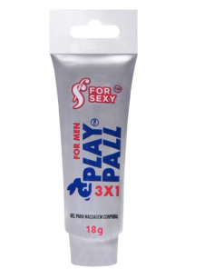 Play Pall 3×1 Gel Masculino Prolonga Ereção 18g For Sexy é um gel para uso íntimo desenvolvido especialmente para auxiliar o homem na prática sexual, não pode ser ingerido, funciona como lubrificante e provoca três sentimentos únicos: vibrar, refrescar e excitar.