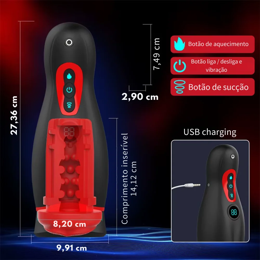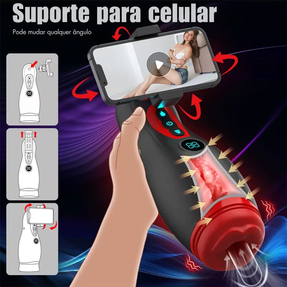 Desenvolvido para proporcionar uma experiência intensa e realista, este masturbador masculino combina sucção potente, vibração ajustável e aquecimento, oferecendo estímulos profundos e personalizados. Seu design ergonômico permite uso confortável, enquanto o suporte ajustável para celular possibilita aproveitar conteúdos com total liberdade de ângulo. Conta com textura interna macia em silicone, que simula sensações reais, aliada a um sistema de sucção poderosa e vibração sincronizada, garantindo máximo prazer. O aquecimento integrado eleva a experiência, proporcionando uma sensação mais próxima do natural.