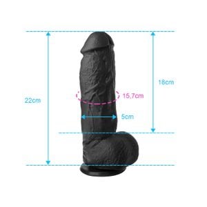 Titã – Prótese Realística 22 x 5 cm – Com Escroto e Ventosa para Penetração Extrema – PRETO