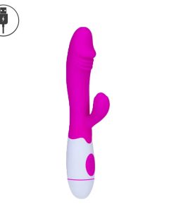 Detalhe de glande em sua ponta, estimulador clitoriano em formato de botão de flor, dois motores que com 30 vibrações
