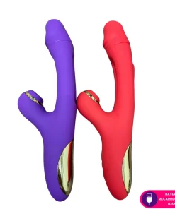 Vibrador estimulador do ponto G por vibração que contém cerda estimuladora na base com movimentações de vai e vem e estimulador clitoriano por ondas de pressão.
