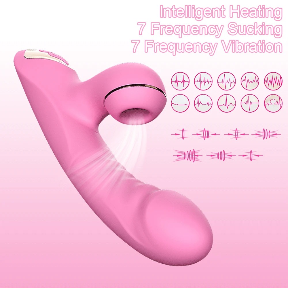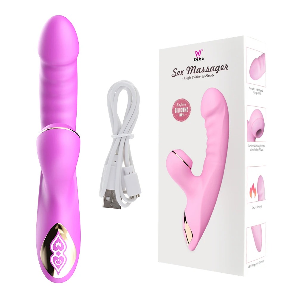 O vibrador com sucção e aquecimento foi feito com material macio de toque aveludado e de fácil limpeza. Com um plug lateral para o estímulo do clitóris fazendo sucções por ondas de pressão, proporcionando muito prazer na hora da penetração.