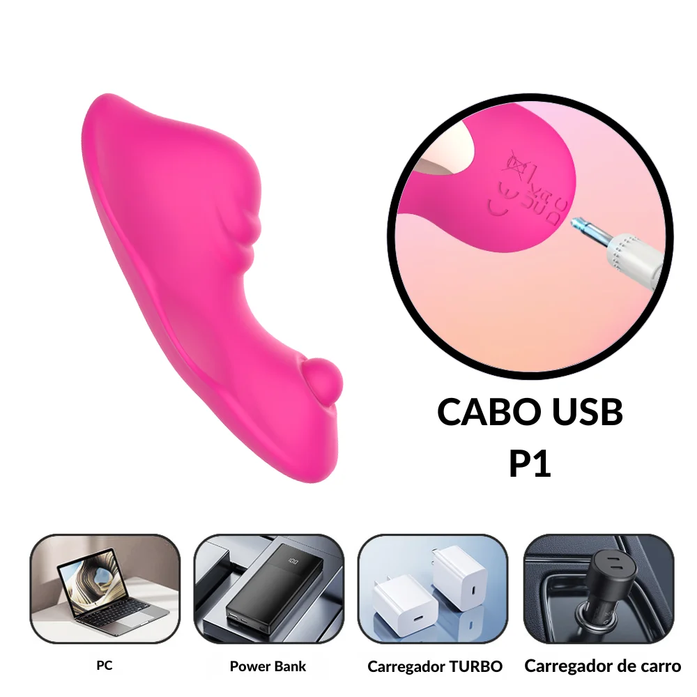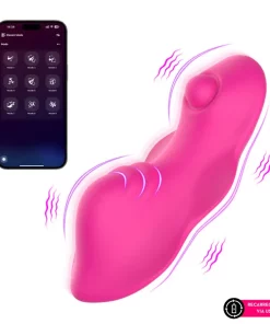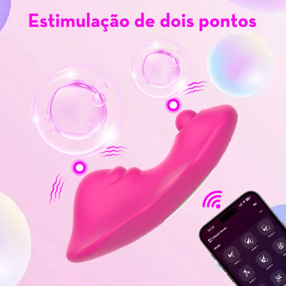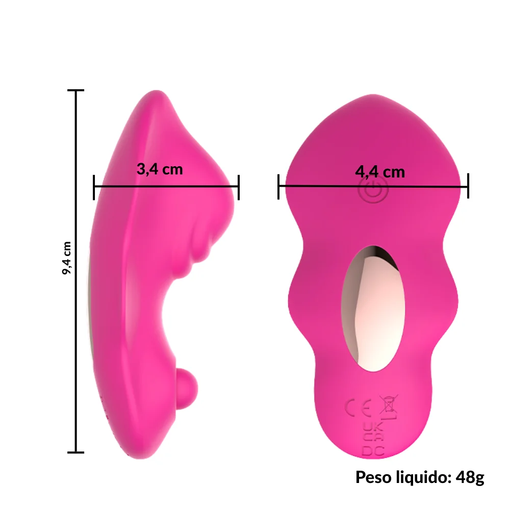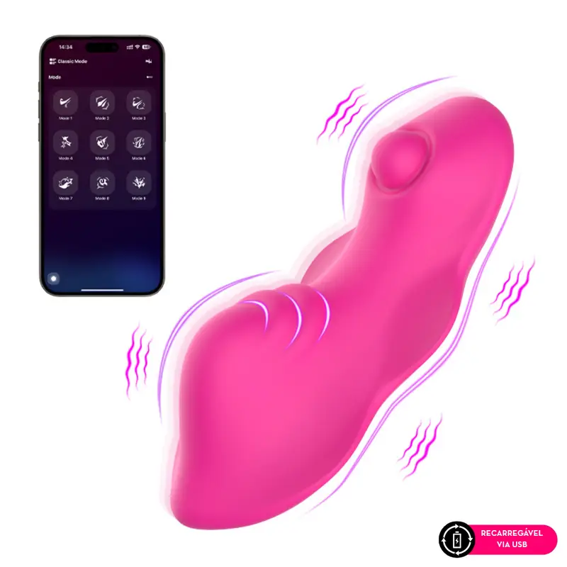Vibrador de calcinha compacto com motor de vibração interna controlado por aplicativo. Ideal para estimulação personalizada com praticidade e design anatômico.