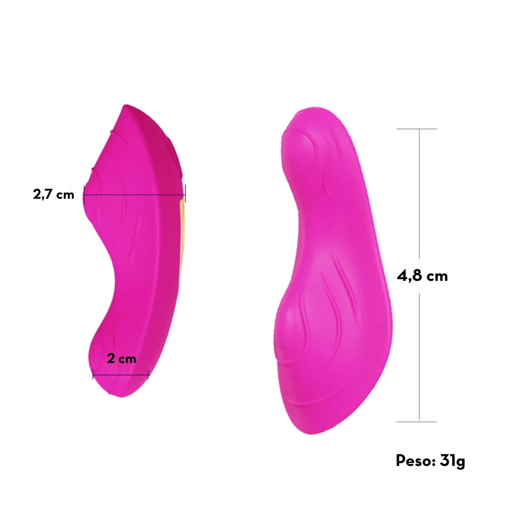 Calcinha vibratória em silicone com relevos estimuladores de clitóris. Possui formato curvo e anatômico, que se ajusta facilmente ao corpo, facilitando o posicionamento correto durante o uso. A curvatura foi pensada para alcançar áreas sensíveis com mais eficiência, proporcionando estímulos mais concentrados.