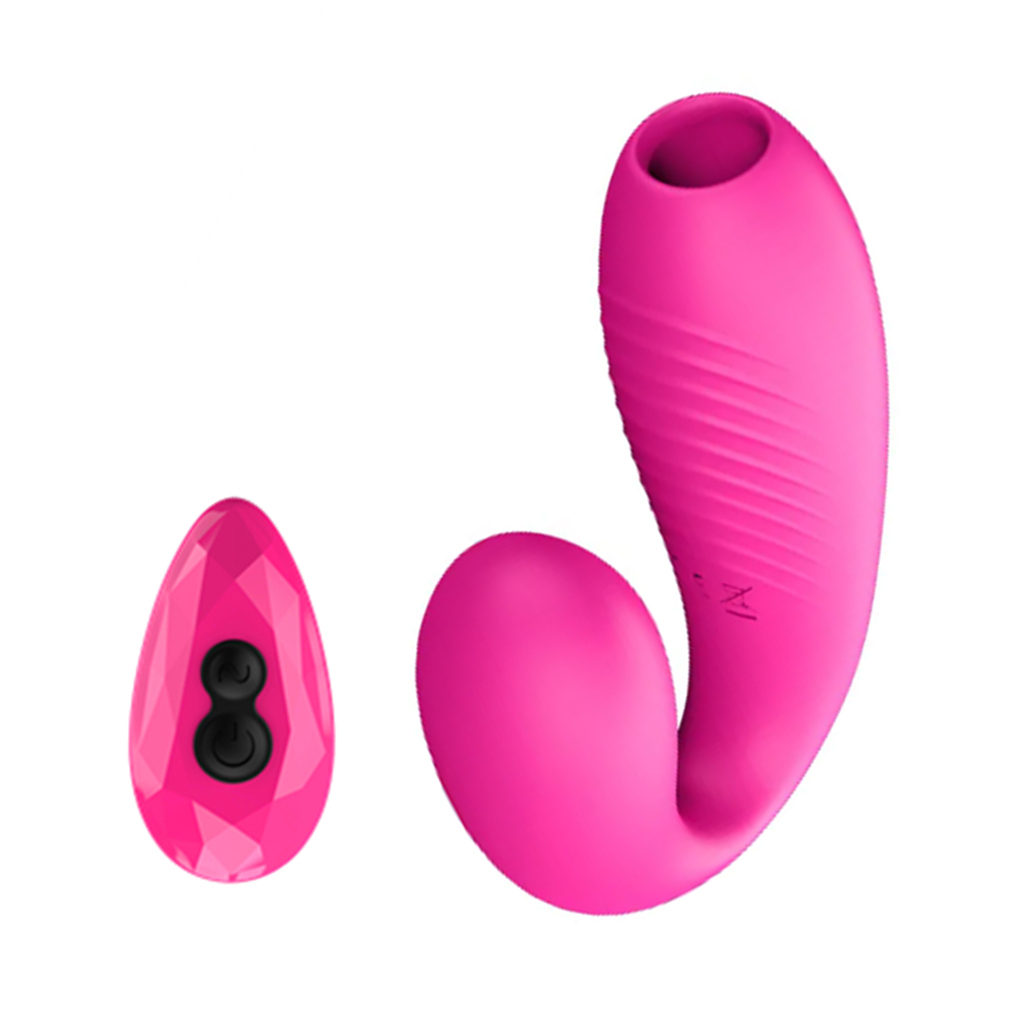 O Vibrador de casal com sugador foi feito com material macio de toque aveludado e de fácil limpeza. Sua curvatura serve para o estímulo do clitóris fazendo a penetração ser muito mais prazeroza. Possui sucção na ponta que pode ser penetrado para sentir a estimulação tanto dentro quanto fora no clitóris.