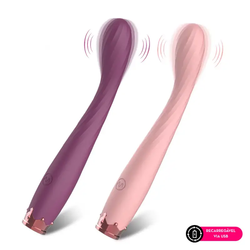 Desenvolvido para proporcionar conforto, praticidade e desempenho, este vibrador conta com design ergonômico e flexível, adaptando-se facilmente ao uso e oferecendo uma experiência personalizada. Possui detalhes metalizados na base em formato de coroa, que agregam um design sofisticado e elegante ao produto.