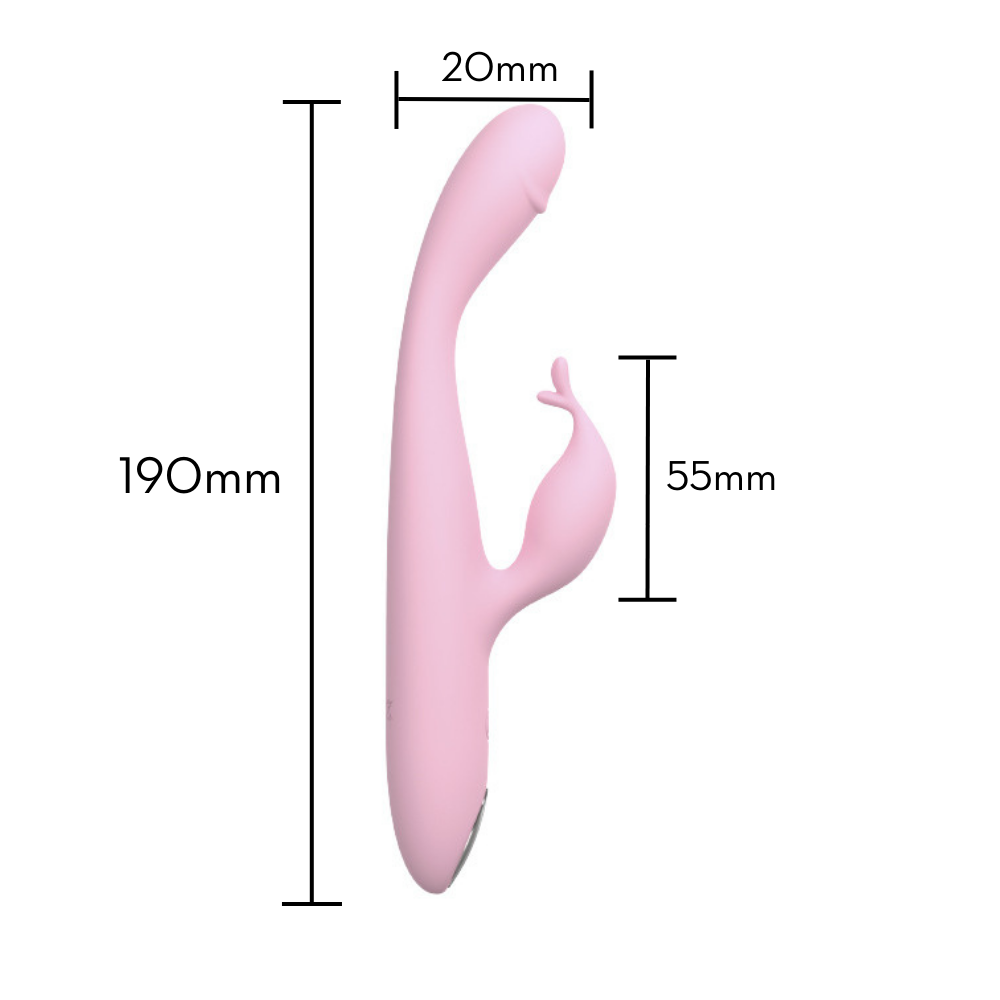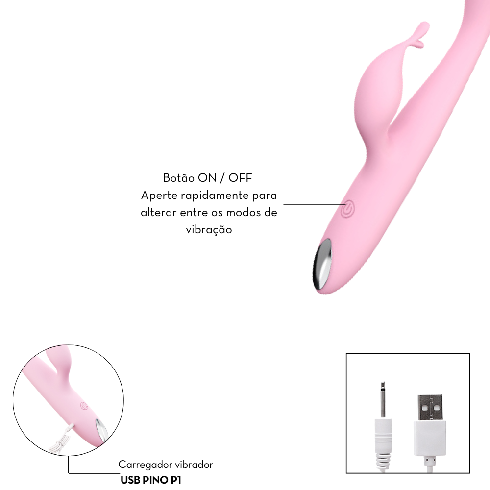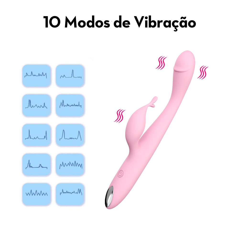 Vibrador estimulador do ponto G por vibração em formato de glande com estimulador clitoriano em formato slug. Possui toque suave, aveludado e detalhes metalizados.