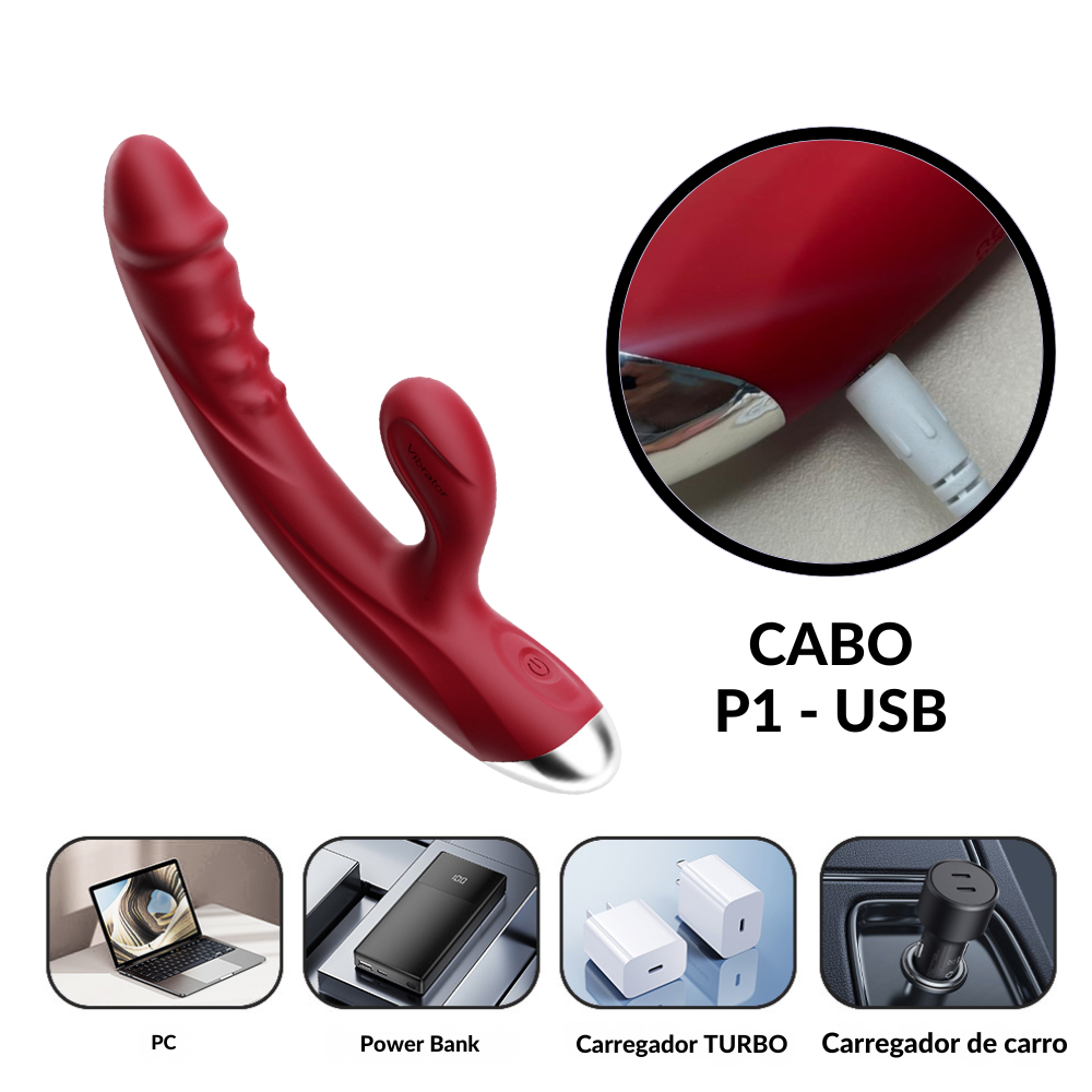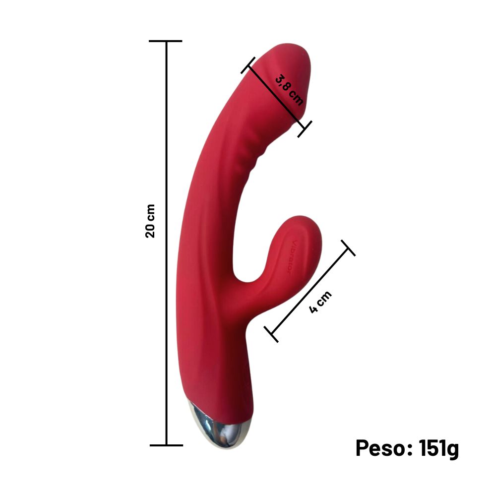 Medidas: Comprimento total: 20 cm – Diâmetro da ponta maior: 3,8 cm – Comprimento do estimulador externo: 4 cm – Peso: 150g