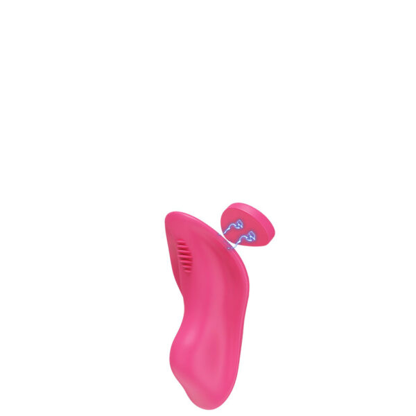 Vibrador recarregável para calcinha com imã e controle via aplicativo à distância. Possui 9 modos de vibração.